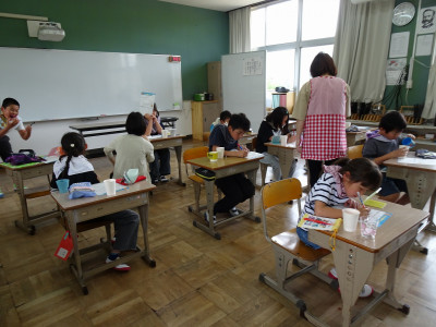 スターウォーズのテーマにのって、ビデオで全校児童に